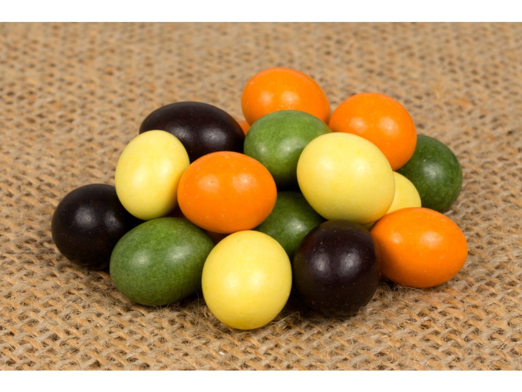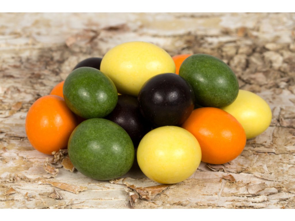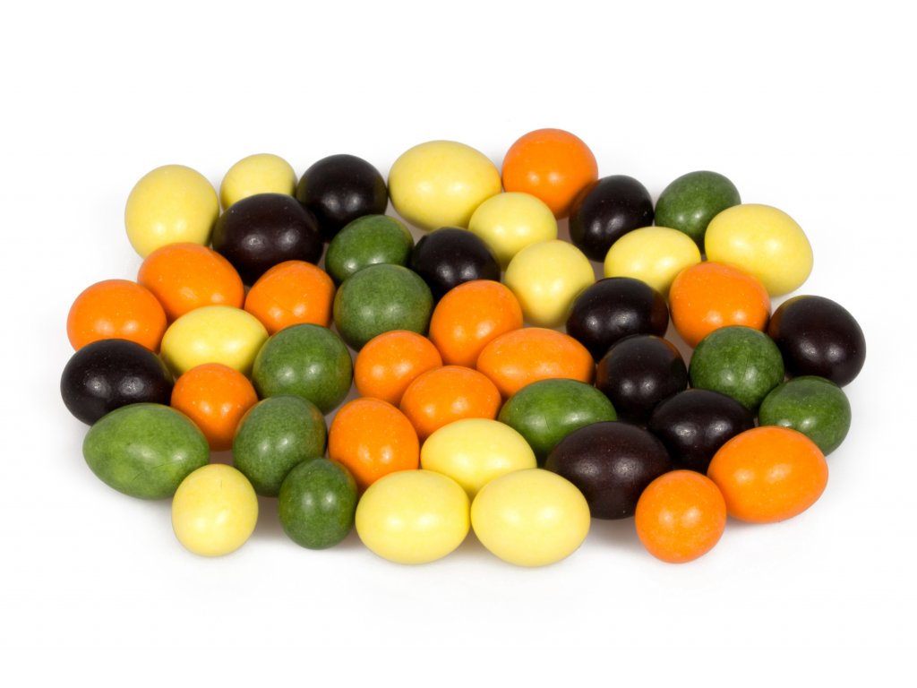 Složení : čokoládová příchuť 35,58%(cukr, ztužený palmojádrový olej,kakaový prášek, maltodextrin,emulgátor: *SOJOVÝ lecitin E322,příchuť),cukr 35,41%,*ARAŠÍDY 13,75%, *PŠENIČNÁ mouka 11,8%,modifikovaný kukuřičný škrob,sladový sirup,leštidlo: E414 a E903, barviva E150d,E171,E160c,E140,E100,sůl,antioxidant E331.