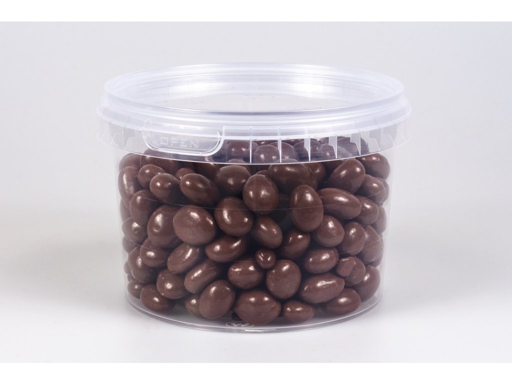 Složení : Mléčná čokoláda 52% (cukr, *sušené MLÉKO, kakaové máslo, kakaová hmota, *SYROVÁTKA, *MÁSELNÝ olej, emulgátor : slunečnicový lecitin E322, leštidlo: arabská guma, šelak E904), *ARAŠÍDY 48%. Kakaová sušina nejméně 25%.
